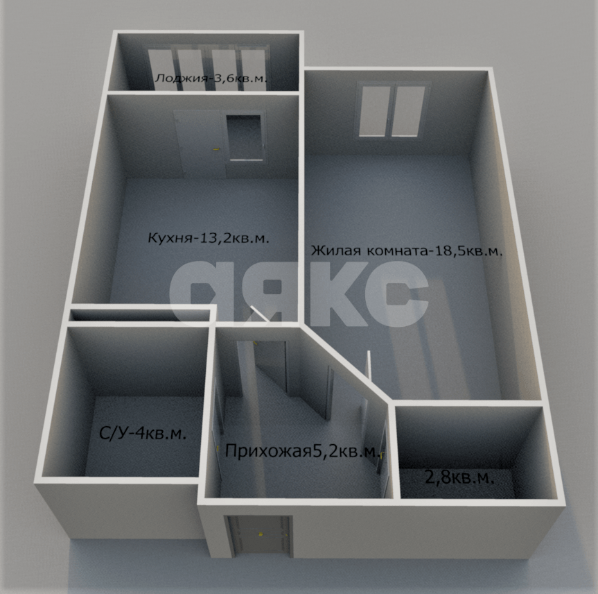 Квартира расположена на втором этаже шестиэтажного монолитного дома. Окна квартиры выходят в сторону моря.