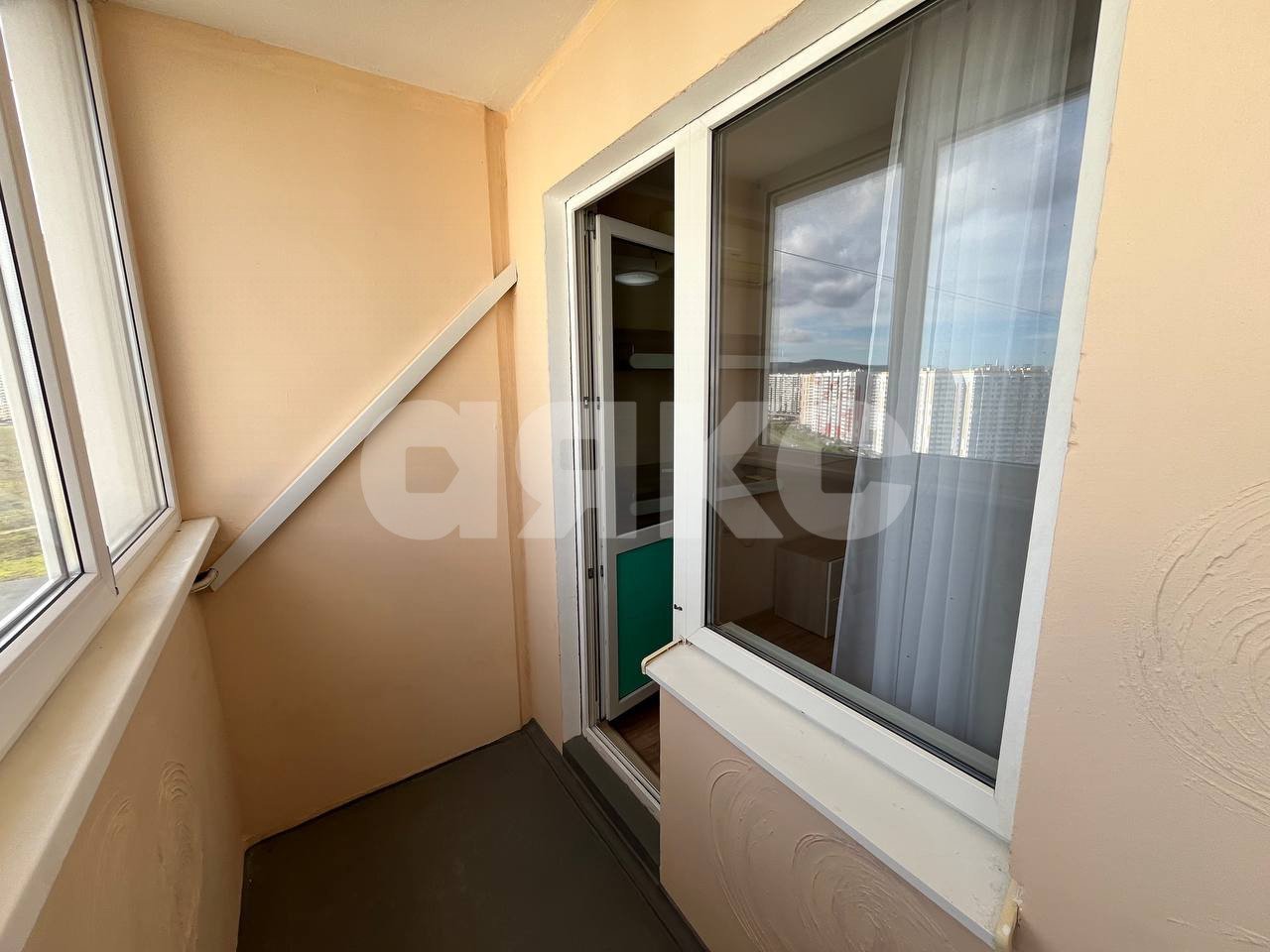 Квартира состоит из просторной жилой комнаты 18 кв.м., санузла- 4.1кв.м, прихожей-3.69кв.м и большого балкона в целых 4кв.м.